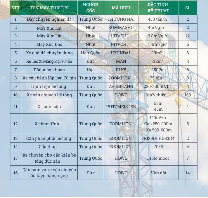 Với mong muốn thi công các công trình đảm bảo đạt chất lượng cao nhất, đúng tiến độ, đáp ứng được mọi yêu cầu của khách hàng, SÔNG ĐÀ - VIỆT ĐỨC đã đầu tư mua sắm nhiều loại máy móc thiết bị hiện đại. Hiện nay, công ty đang sở hữu hàng trăm thiết bị máy móc thi công đồng bộ, hiện đại, phần lớn là các sản phẩm nhập khẩu trực tiếp từ các quốc gia hàng đầu về công nghệ (Đức, Nhật, Trung Quốc, Nga....)