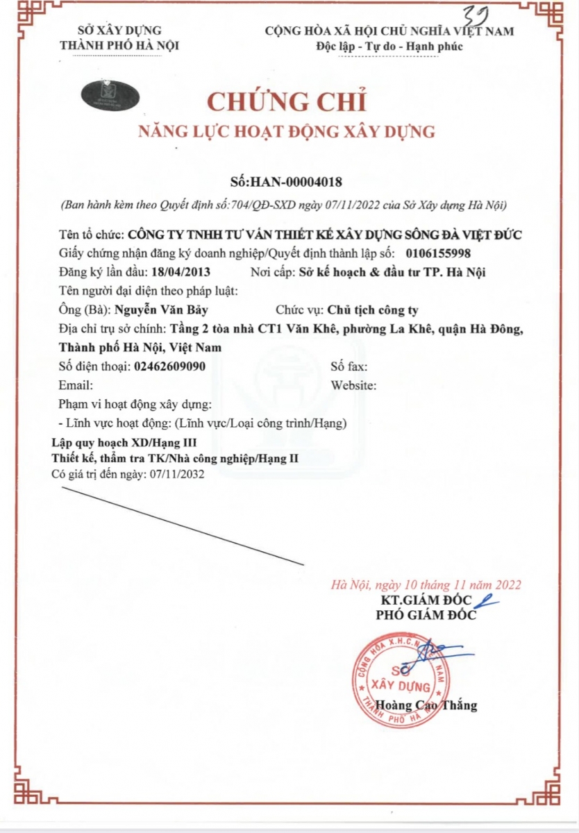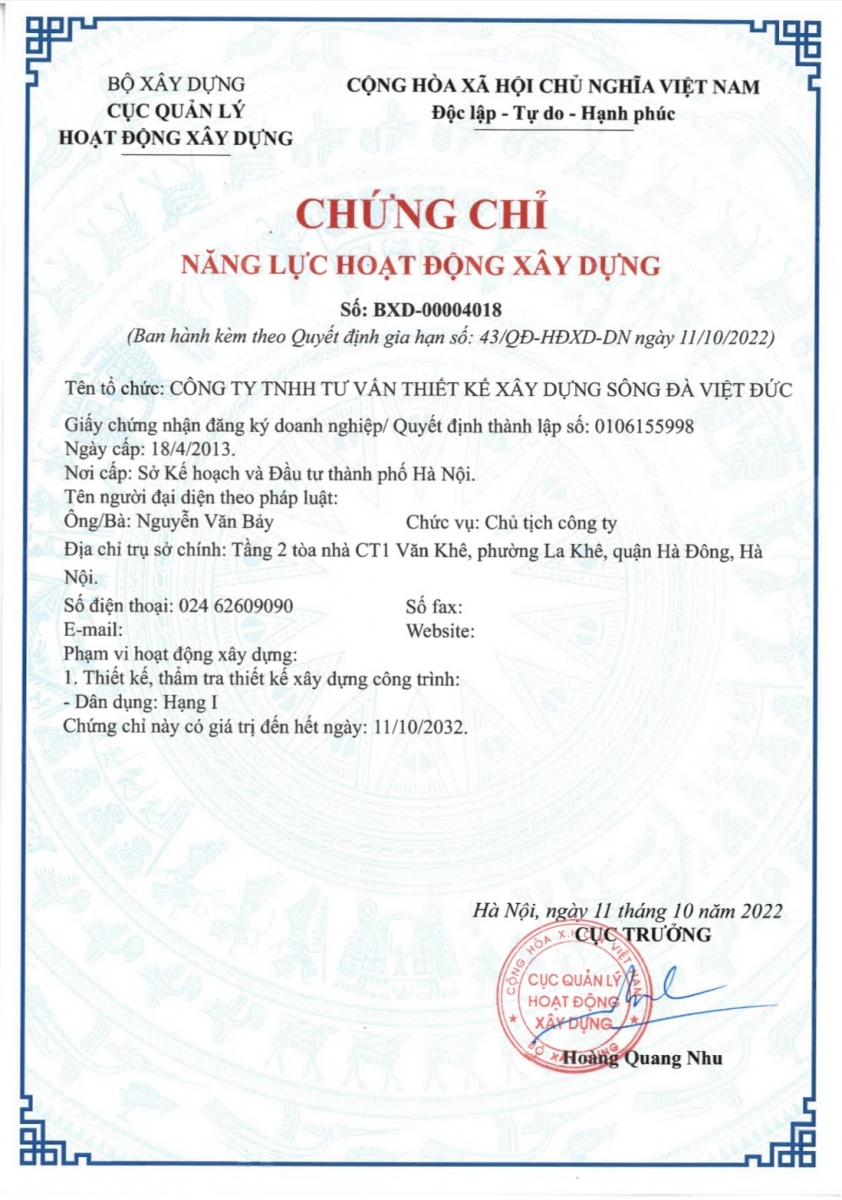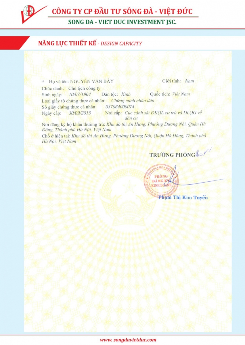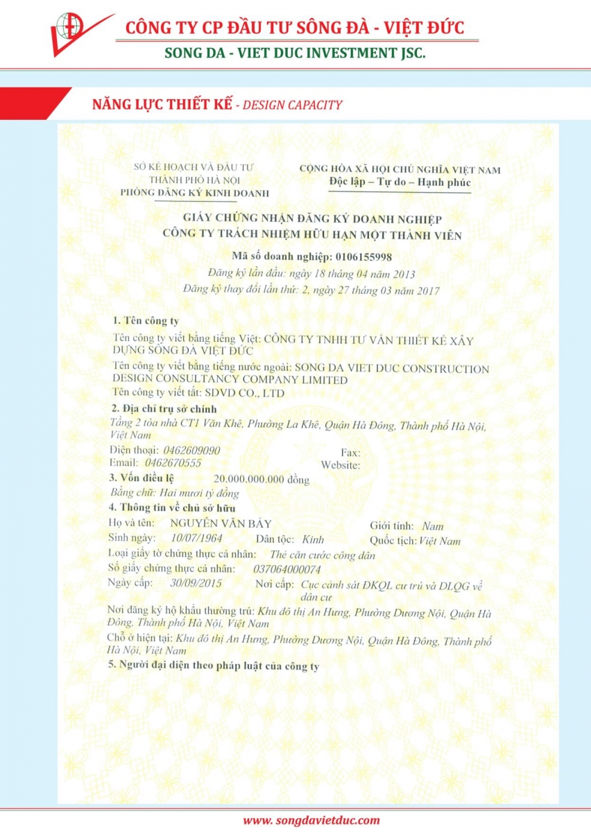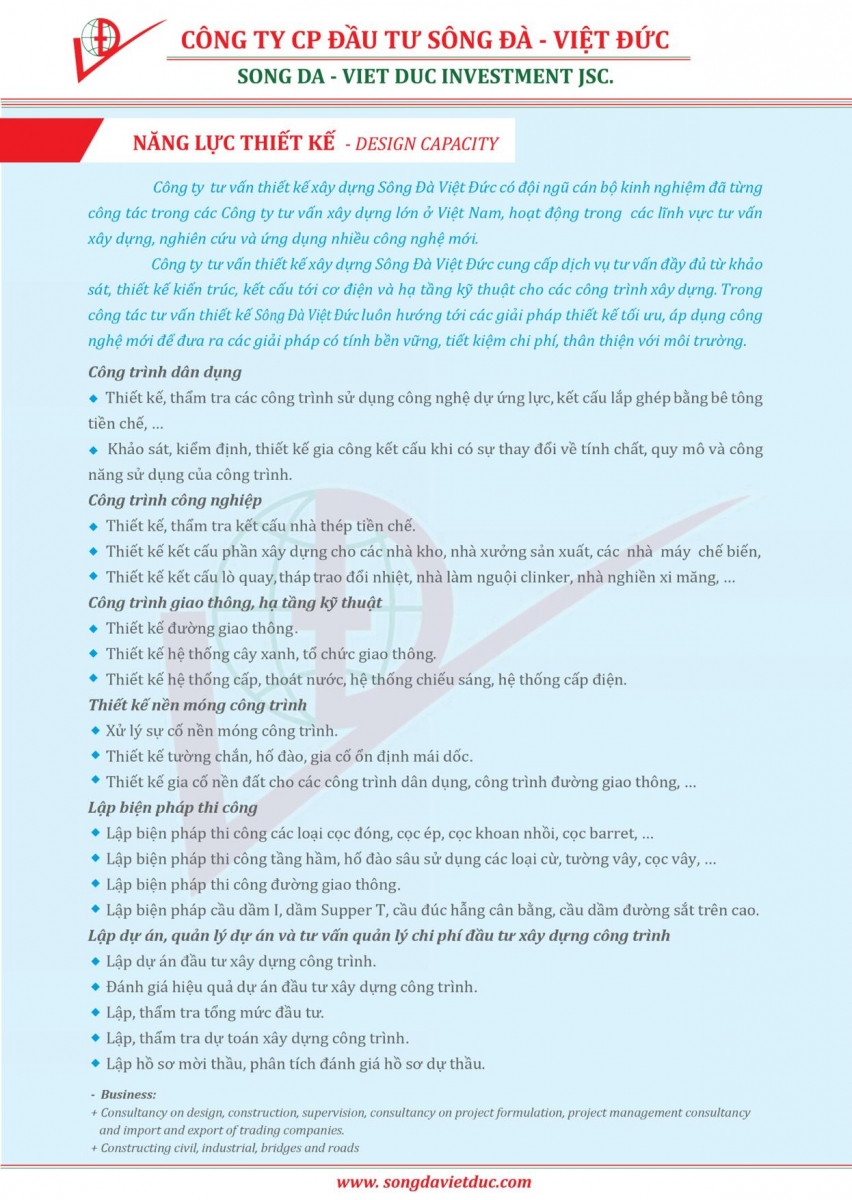 Năng lực thiết kế Công ty Cổ phần Đầu tư Sông Đà Việt Đức